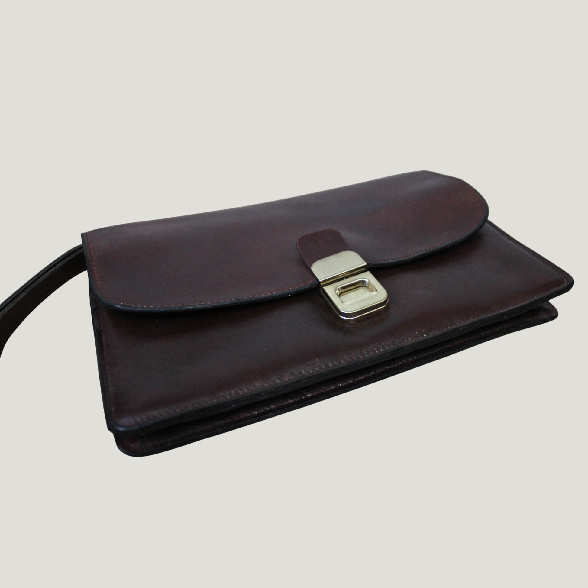 Yamani Genuine Leather Wrist Clutch Bag Dark Brown