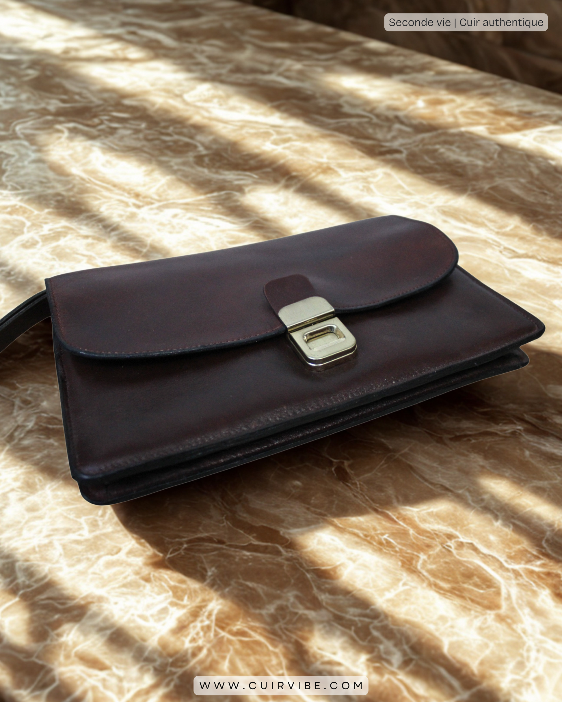 L'élégance du voyage à portée de main. Cette pochette Yamani en cuir véritable marron foncé incarne le raffinement intemporel. Sa patine naturelle et ses finitions soignées en font un accessoire aussi élégant que fonctionnel.