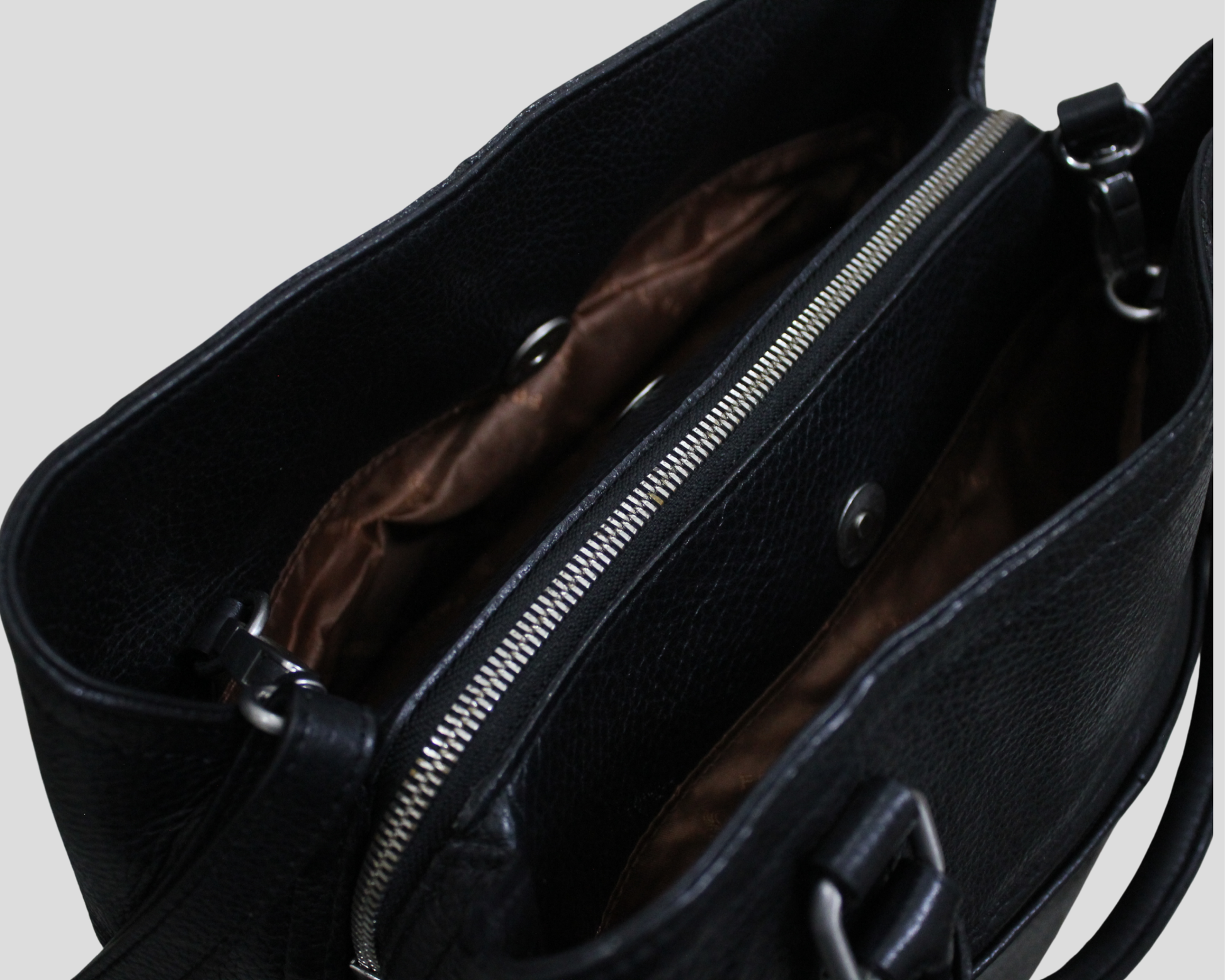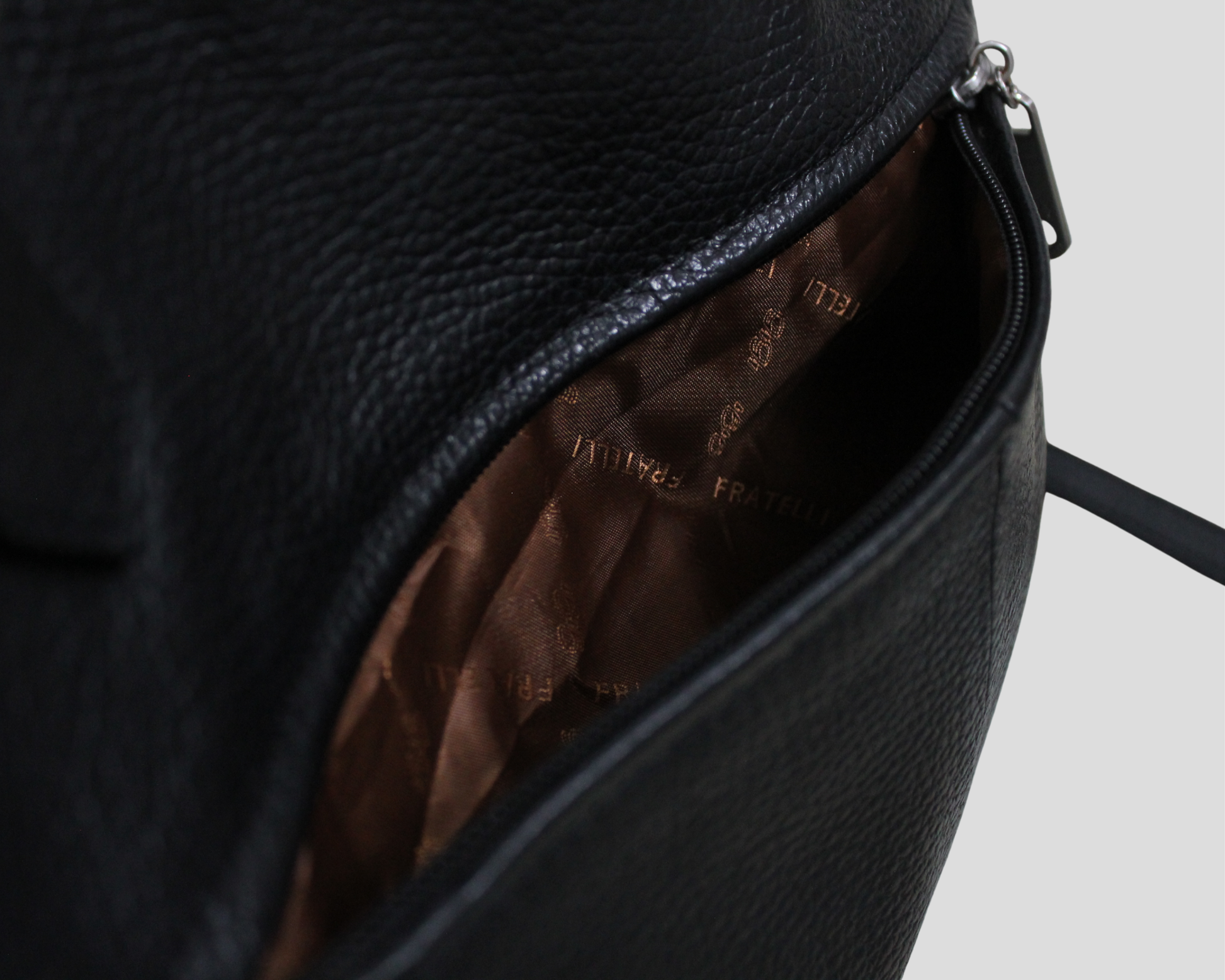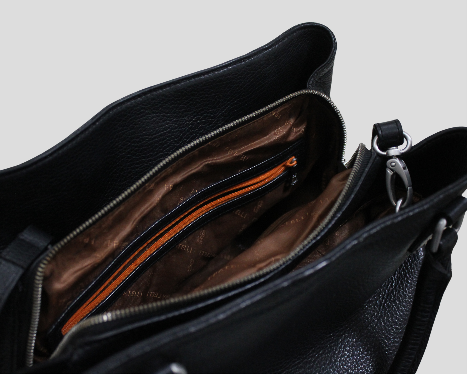 Ce sac à bandoulière de la marque italienne GIGI FRATELLI collection Romance est un excellent sac comme sac de travail standard ou pour un usage quotidien. En effet, la taille du sac se situe entre un sac de travail et un sac à bandoulière. Le sac est fait de cuir grainé noir et a une doublure en polyester marron avec des coutures Gigi Fratelli. Gigi Fratelli accorde beaucoup d'attention à l'intérieur des sacs lors du développement de leurs produits, ce qui se reflète dans la disposition soignée des sacs.