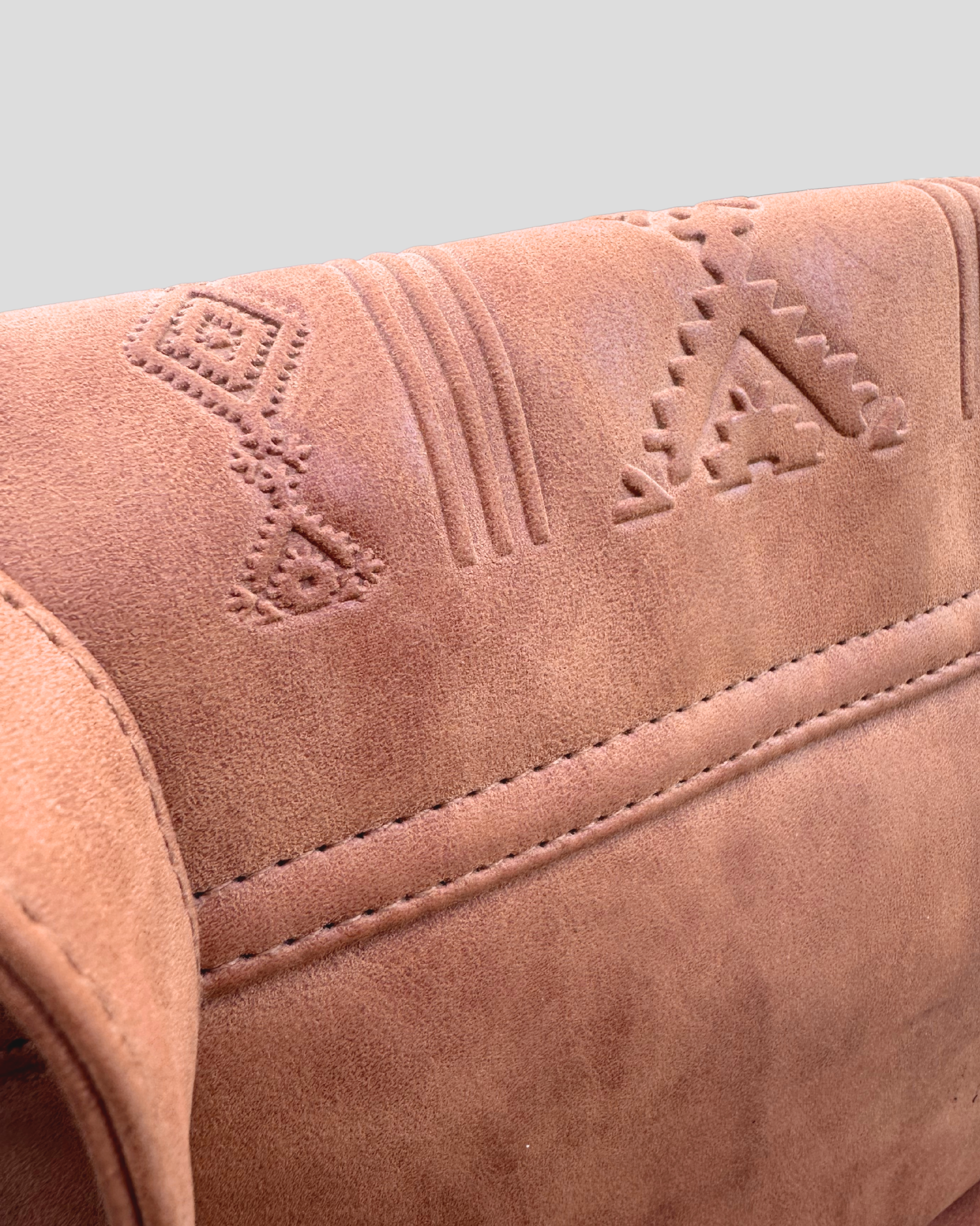 Élégance décontractée et style bohème se rencontrent dans ce sac bandoulière au coloris tan (beige rosé). Sa forme arrondie et son rabat délicatement embossé lui apportent une touche à la fois moderne et naturelle.