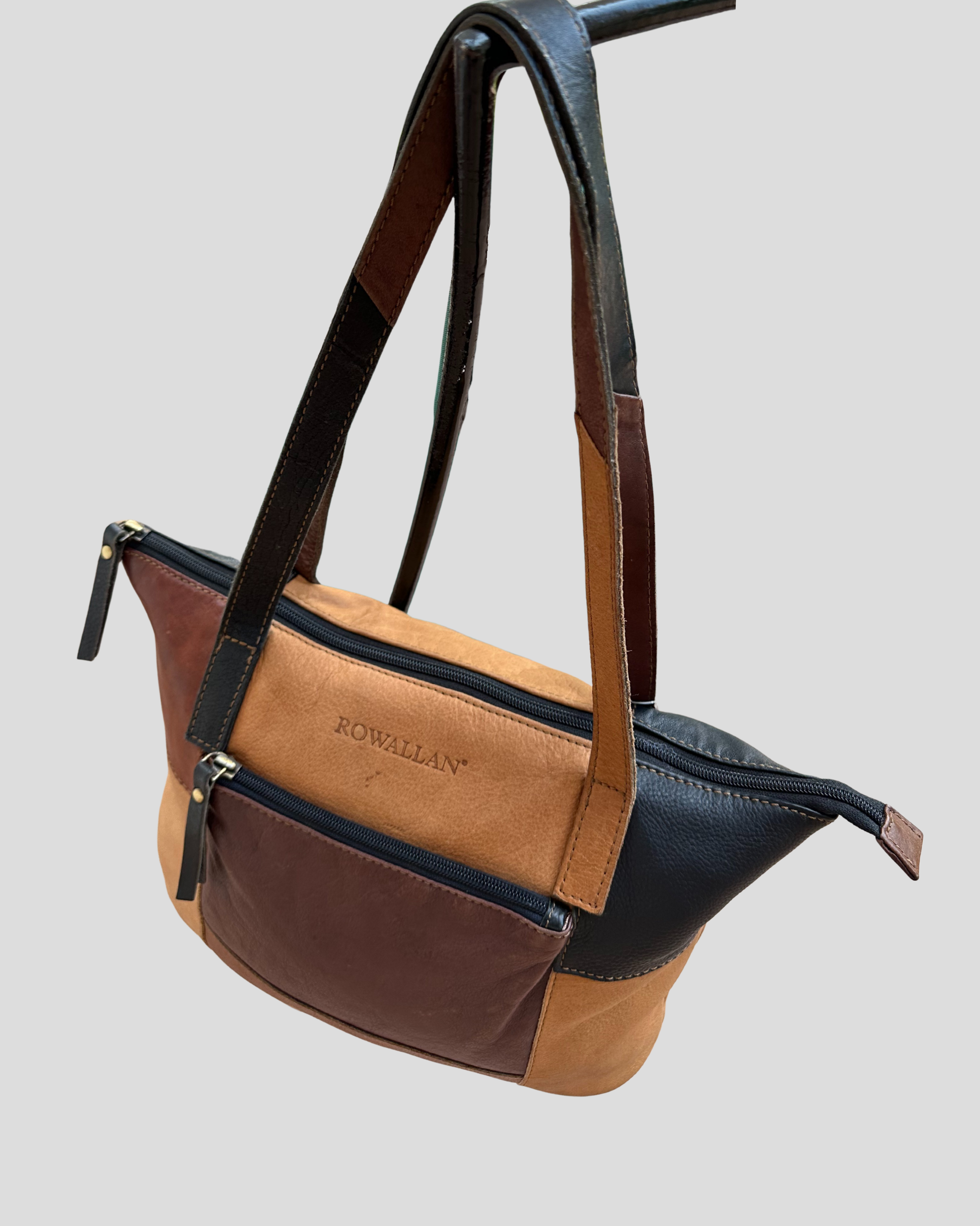 Un sac en cuir à l’allure chaleureuse et authentique, façonné dans un mélange de cuirs aux tons bruns naturels.